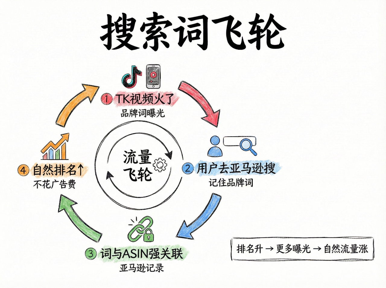 TK上一条视频火了,用户记住了你的品牌词或者产品关键词,然后跑到亚马逊去搜。