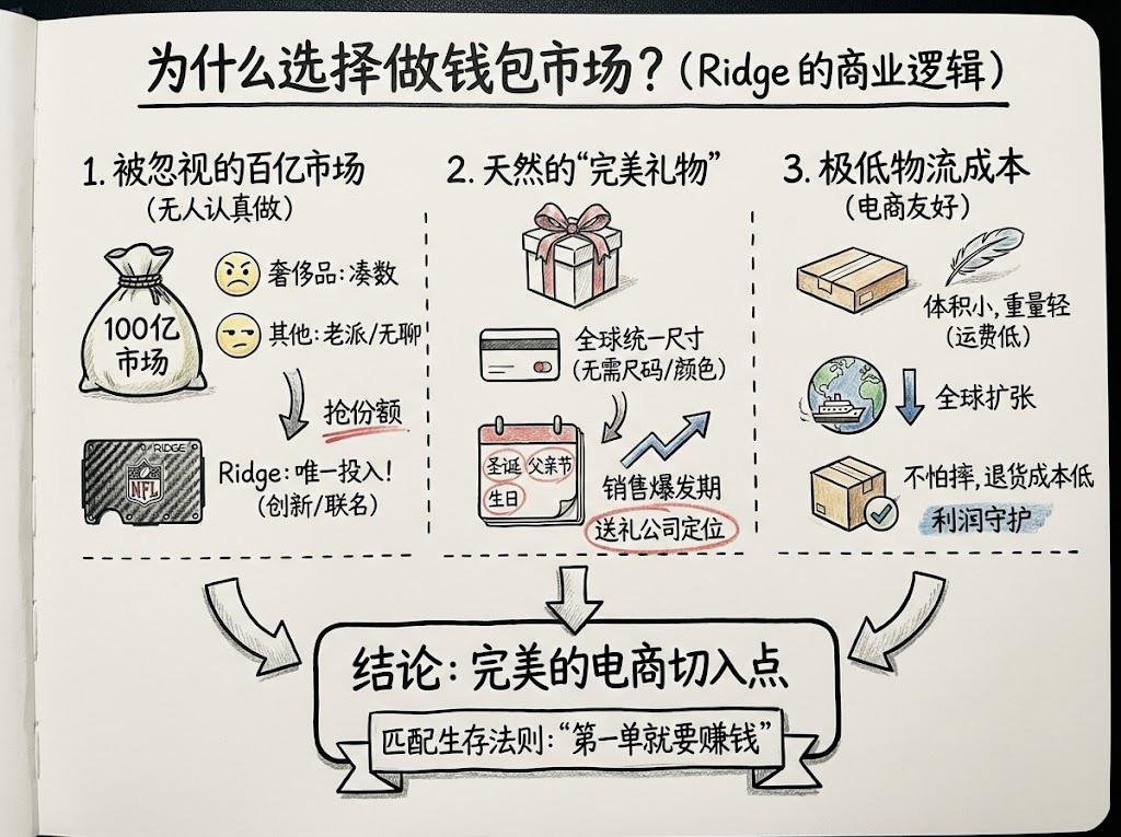 有了他,Ridge 就不只是”那个卖钱包的”,而是可以卖手机壳、充电宝、行李箱——整个配件品类都打开了。