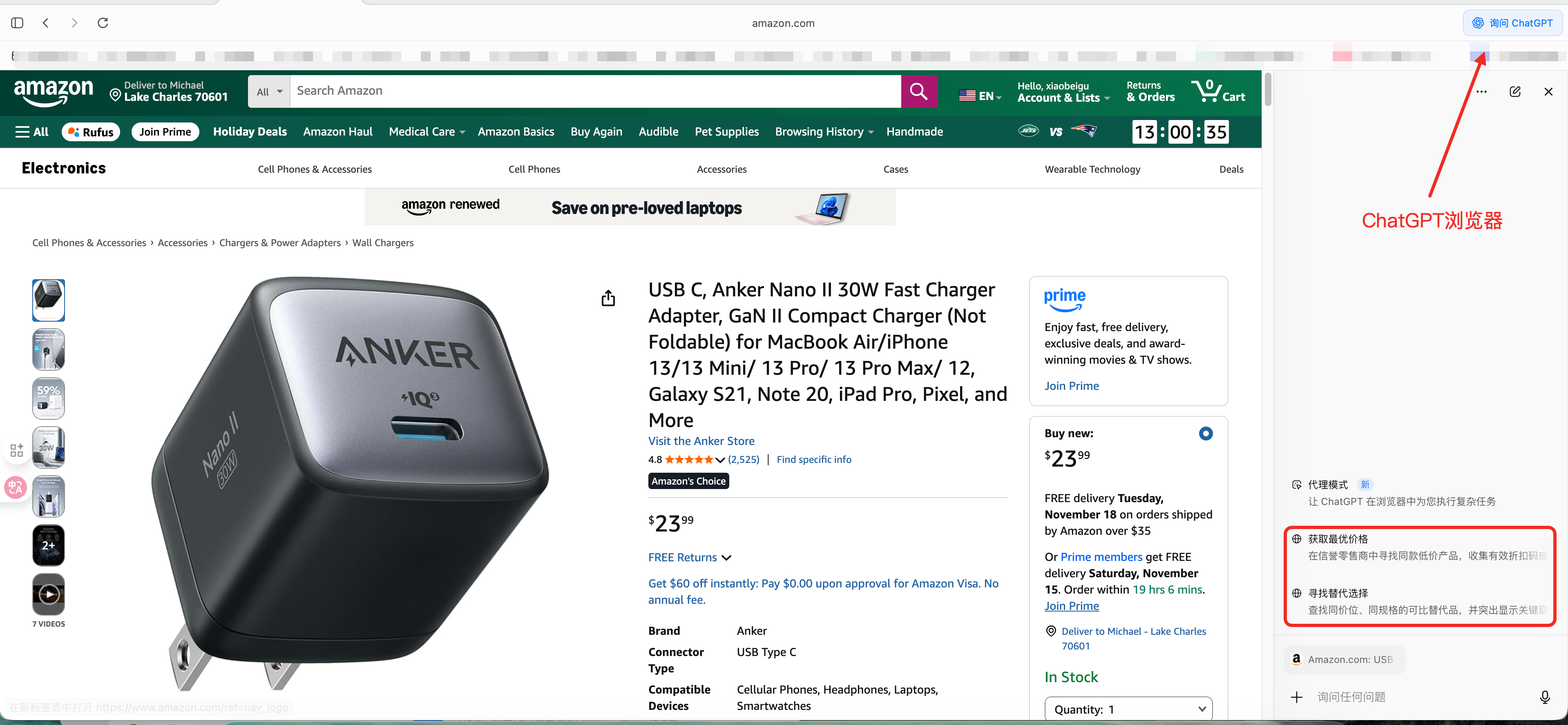 我们来看下,下面的内容是我用ChatGPT打开亚马逊的一个购物页
