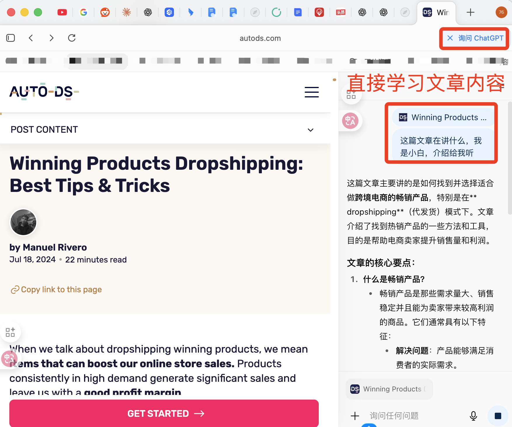 你在插件里问 ChatGPT “帮我总结这篇文章”,它要重新加载一遍网页内容;