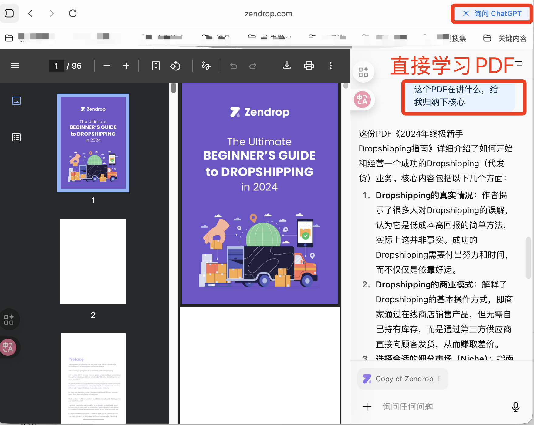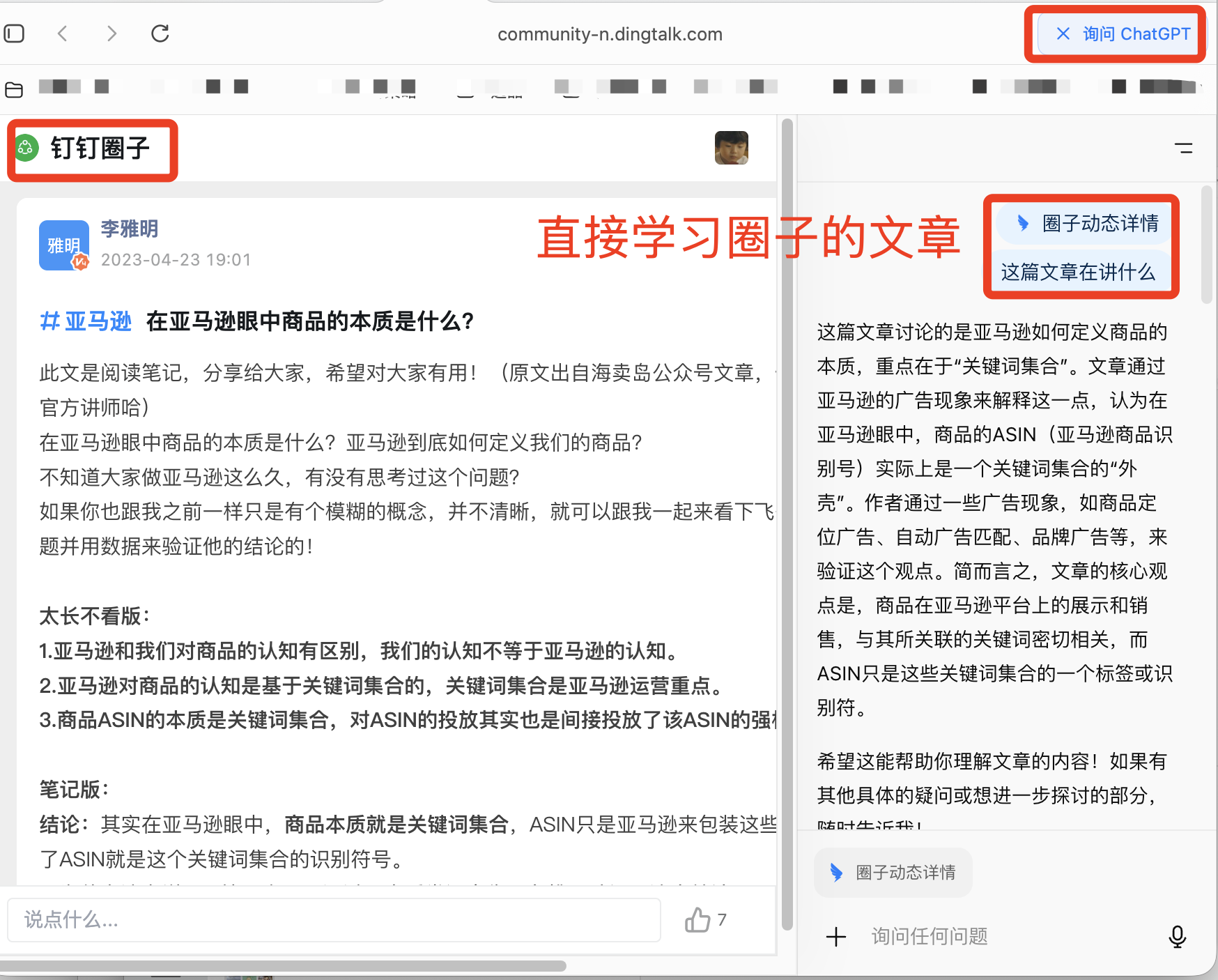 视频,文档,圈子,那么这些内容和现在可以在浏览器上,和AI直接结合起来,真个学习效率是肉眼可见的。