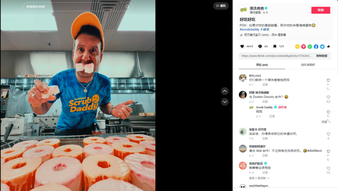 很多人觉得清洁类产品最难做内容,因为太无聊了,但Scrub Daddy 在这一方面也做的很成功。