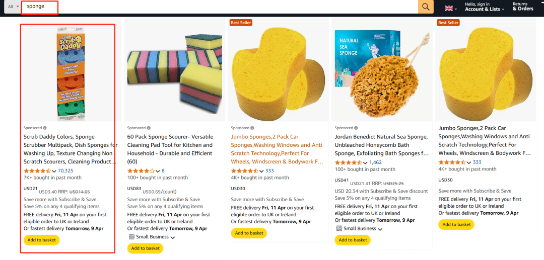 在亚马逊上,关键关键词如“sponge”、“kitchen scrubber”下长期霸榜;多数产品评价过万,评分稳定在4.6以上。