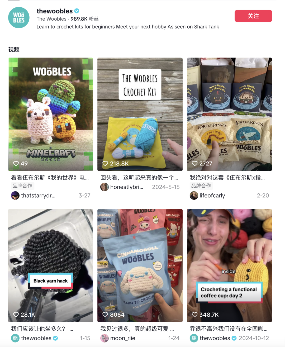 此外,The Woobles 通过和各种手工艺品博主、YouTuber 以及社交平台的 KOL 合作,进一步拓展了品牌的市场影响力。