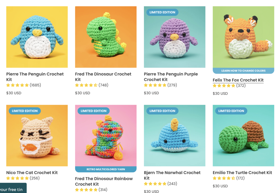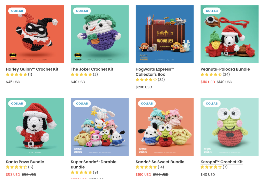 The Woobles 的核心产品是钩针套件,这些套件是为初学者设计的,让任何人都能在几小时内完成一件作品。