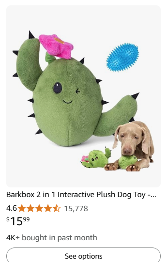 BarkBox 在 Amazon 美国站设有官方 Brand Store,主推季节性礼盒与玩具组合。