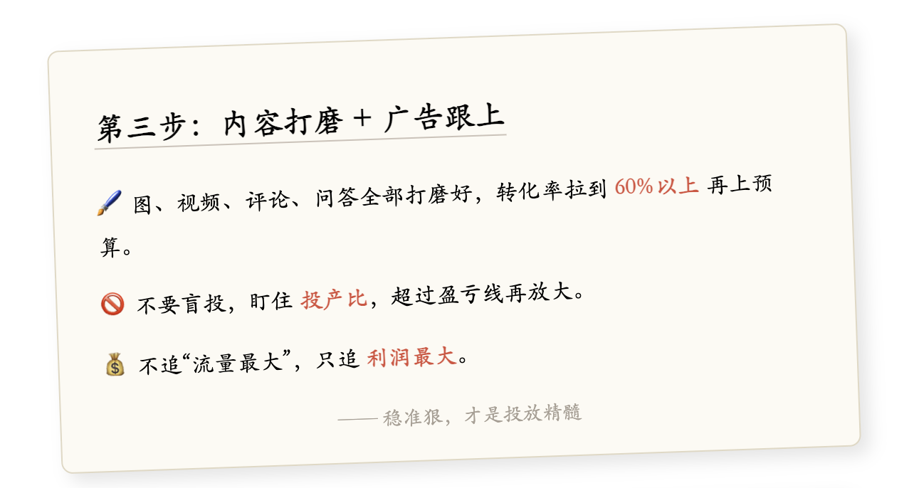 第三步:内容打磨+广告跟上